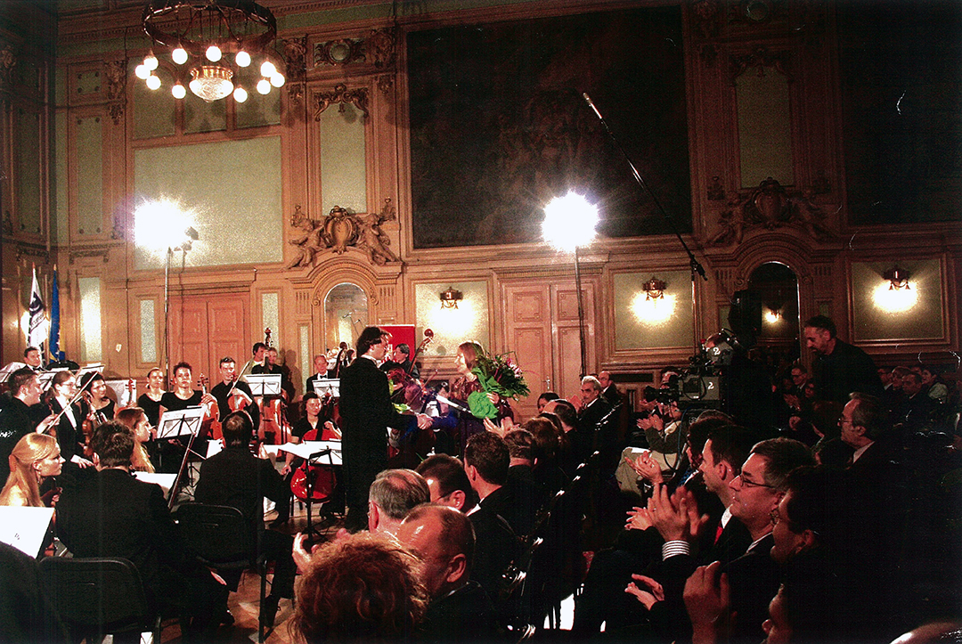 As event organizer, presenting flowers to conductor, OSCE International Human Rights Day Concert, Sarajevo, Bosnia, Dec. '06.